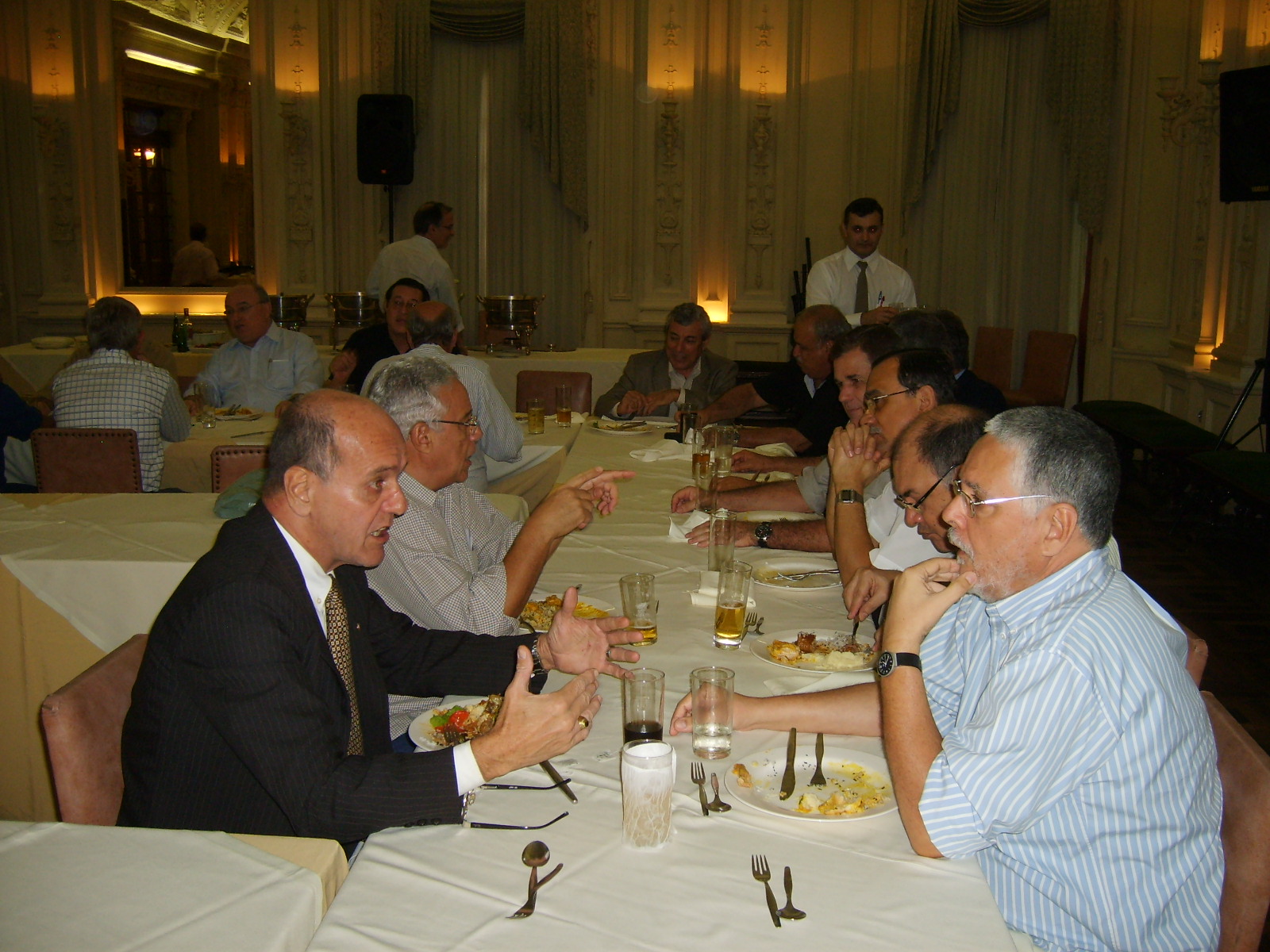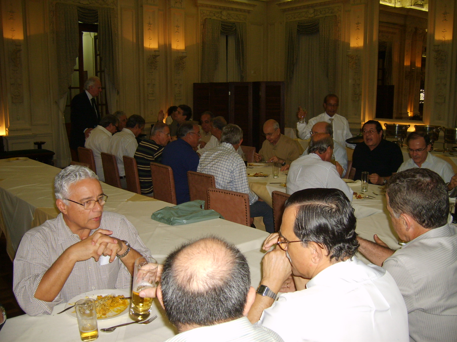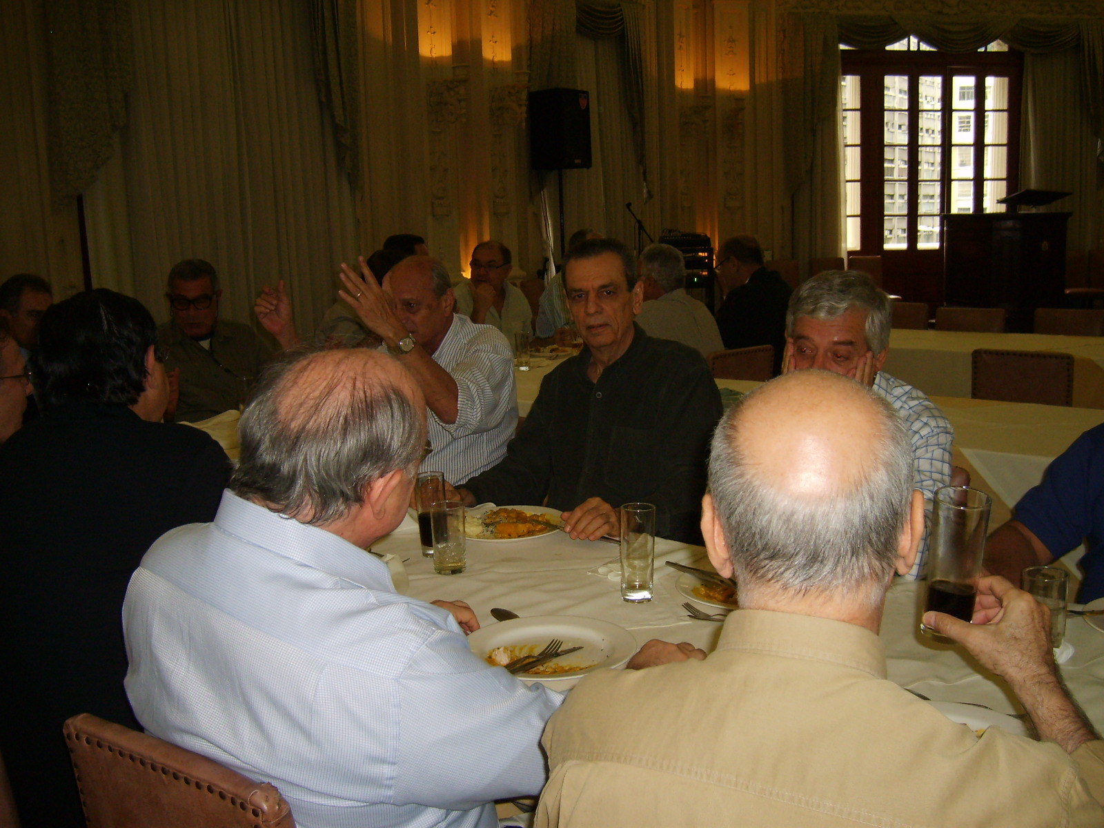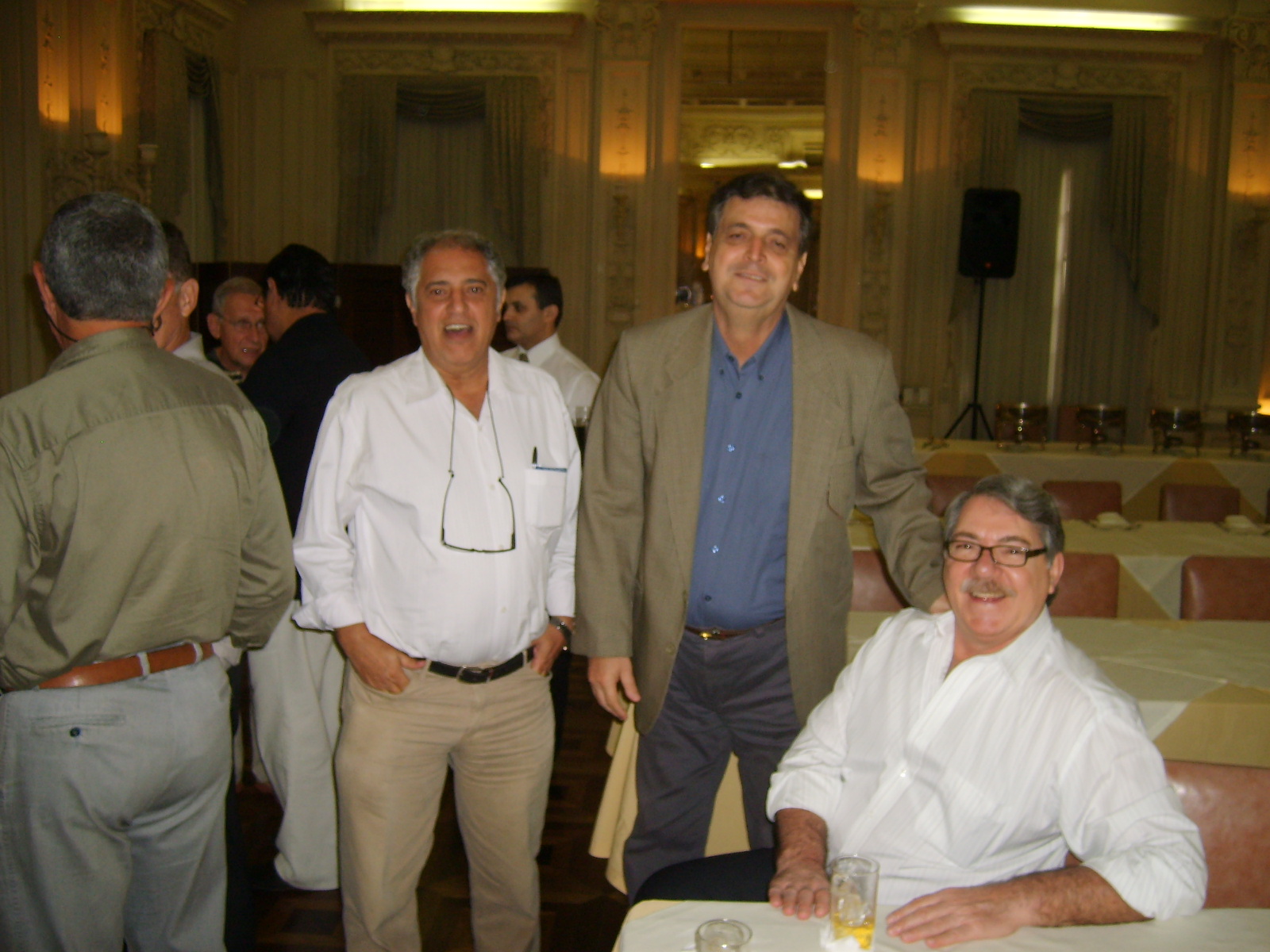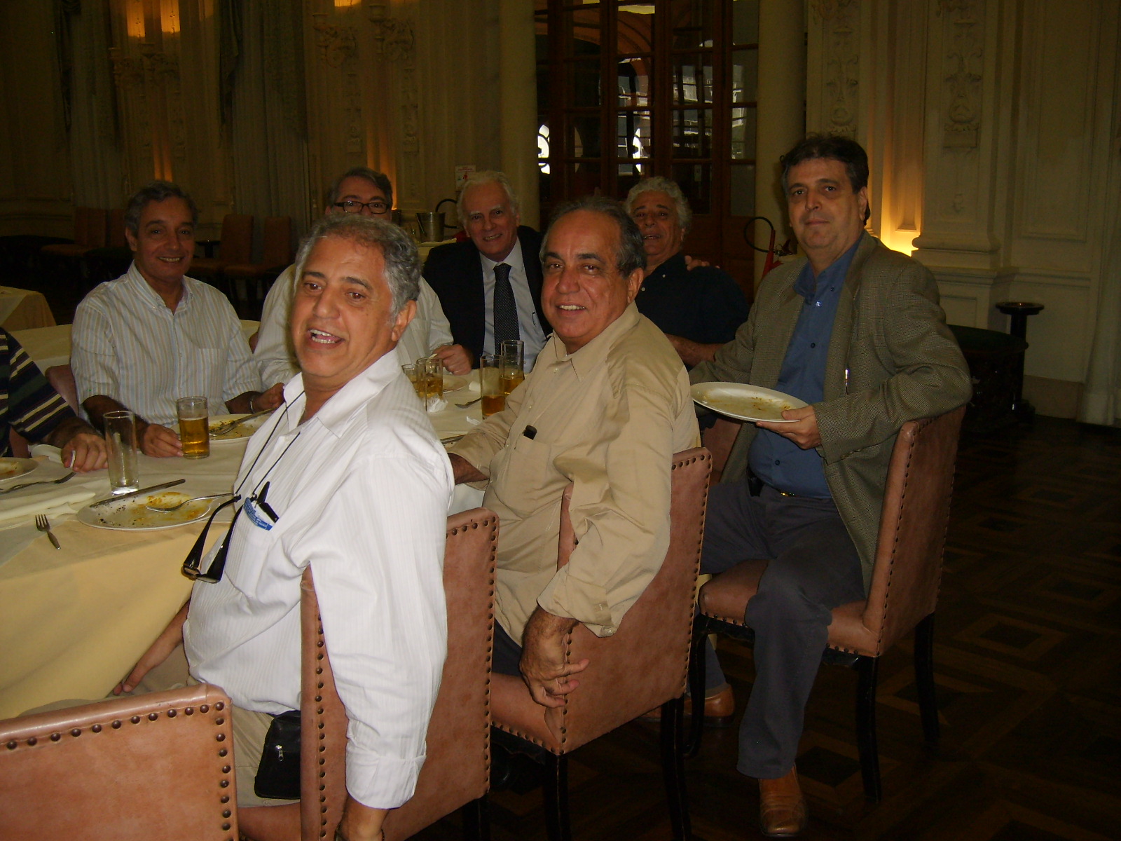 Amigos e companheiros Terça passada, 03, antes de nosso já tradicional almoço das primeiras terças de cada mês, fomos brindados pelo Delfino com uma palestra sobre as OLIMPÍADAS MILITARES 2011? a serem realizados aqui no Brasil. Foi uma apresentação muito boa, bem preparada e, principalmente, elucidativa. Ficamos boquiabertos com a grandeza do espetáculo que está por vir. Trata-se do terceiro maior evento esportivo do mundo que está sendo, desde já, preparado com muito profissionalismo por parte de todos aqueles envolvidos com os jogos. Pena que o tempo alocado não tenha sido o suficiente para permitir ao Delfino presentar-nos tudo o que tinha preparado. Mesmo assim recebemos um bom número de informações. A grande maioria dos presentes não tinha conhecimento do que nos foi detalhadamente apresentado, inclusive o pessoal que ainda labuta na MB. É triste ver que a divulgação, tanto na mídia como para o público interno, ainda não tenha acontecido como merece situações com essa. Segundo o Delfino, isso passará a ser divulgado a partir do 7 de setembro próximo. Vamos aguardar. Delfino, receba da diretoria da ATRM, em nome dos associados, nossos respeitos e agradecimentos por nos proporcionar momento que agregaram conhecimentos e satisfação de poder deparar, mais uma vez, que o profissionalismo militar continua cada vez melhor. ABREU LIMA WASHINGTON MOTTA PS: Fica desde já lançado um desafio para os demais membros da ATRM (sem crise). O evento almoço das primeiras terças, precedido de palestra, tem se mostrado um sucesso. É cada vez maior o número de participantes. Fomos brindados com palestras sobre submarino nuclear, glaucoma e olimpíadas militares, ministradas por representantes do corpo da armada, de civil médico e do corpo de fuzileiros . Está faltando a participação de outros importantes representantes da nossa associação: os intendentes, engenheiros navais e civis de outras áreas de atividade........ aguardamos inscrições/sugestões para as possíveis próximas palestras.CONFIRA ALGUNS MOMENTOS DO EVENTO